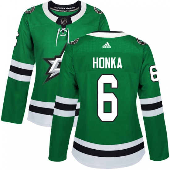 Home>NHL>Dallas Stars>Julius Honka>Women's Adidas Dallas Stars #6 Julius Honka Authentic Green Home NHL Jersey
