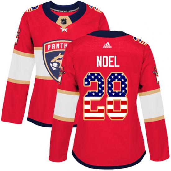 >Women's Adidas Florida Panthers #28 Serron Noel Authentic Red USA Flag Fashion NHL Jersey