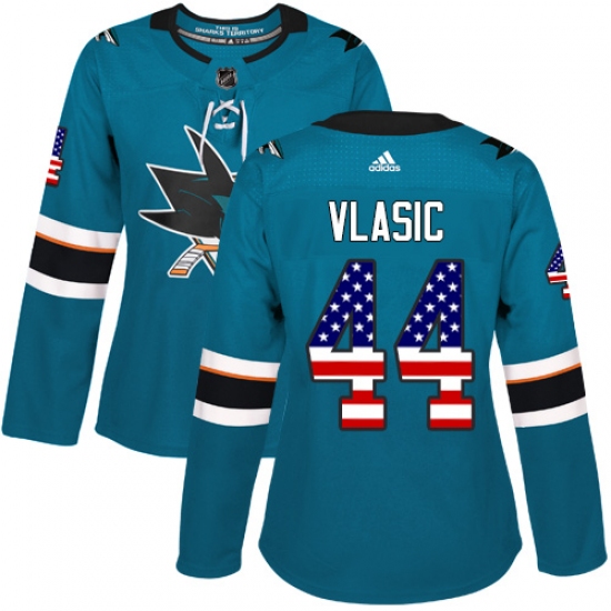 Home>NHL>San Jose Sharks>Marc-Edouard Vlasic>Women's Adidas San Jose Sharks #44 Marc-Edouard Vlasic Authentic Teal Green USA Flag Fashion NHL Jersey