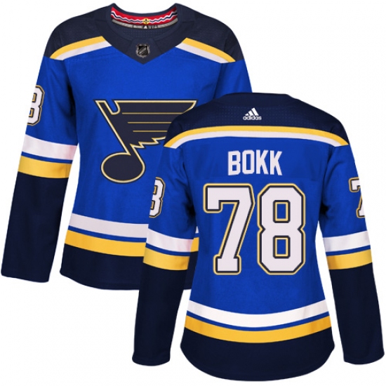 >Women's Adidas St. Louis Blues #78 Dominik Bokk Authentic Royal Blue Home NHL Jersey