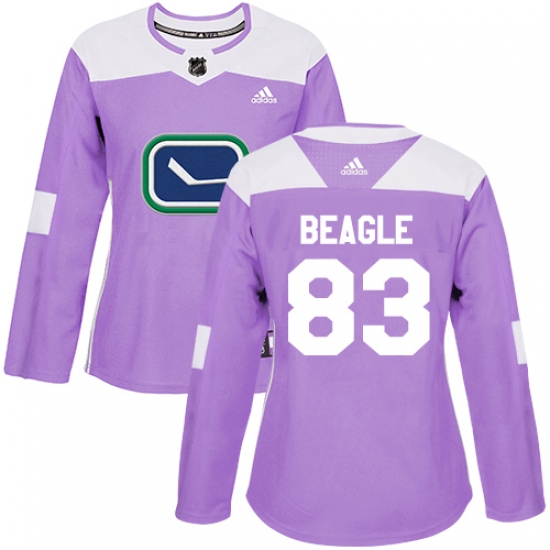 >Women's Adidas Vancouver Canucks #83 Jay Beagle Authentic Purple Fights Cancer Practice NHL Jersey