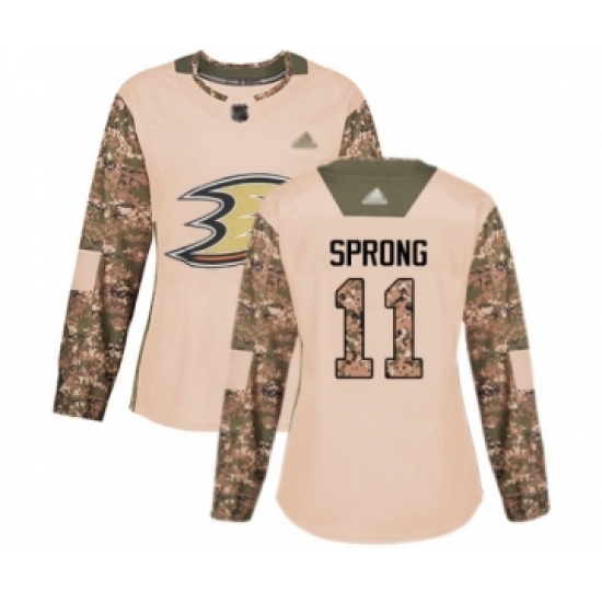 >Women's Anaheim Ducks #11 Daniel Sprong Authentic Camo Veterans Day Practice Hockey Jersey