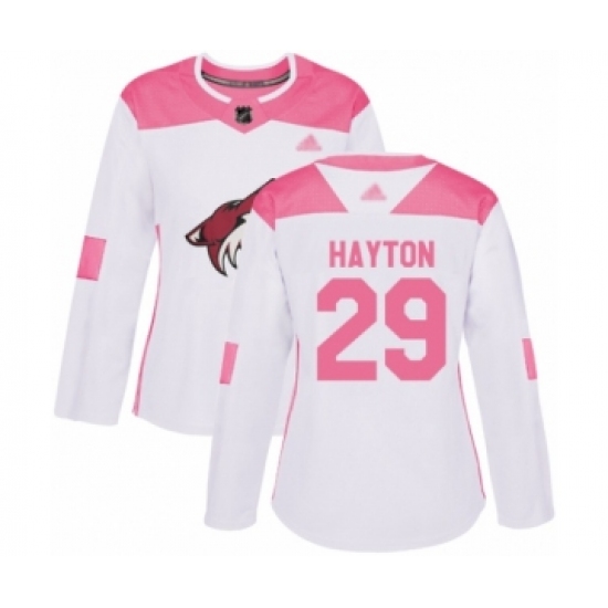 Women's Arizona Coyotes #29 Barrett Hayton Authentic White Pink Fashion Hockey Jersey