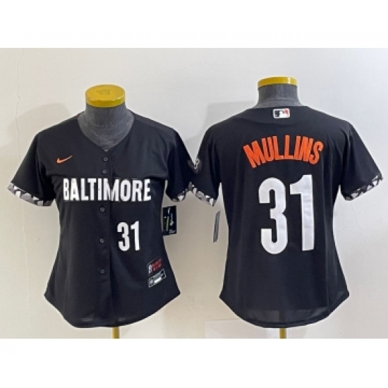 >Women's Baltimore Orioles #31 Cedric Mullins Number Black 2023 City Connect Cool Base Stitched Jersey 1