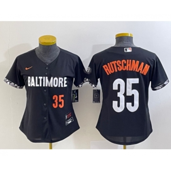 >Women's Baltimore Orioles #35 Adley Rutschman Number Black 2023 City Connect Cool Base Stitched Jersey 2