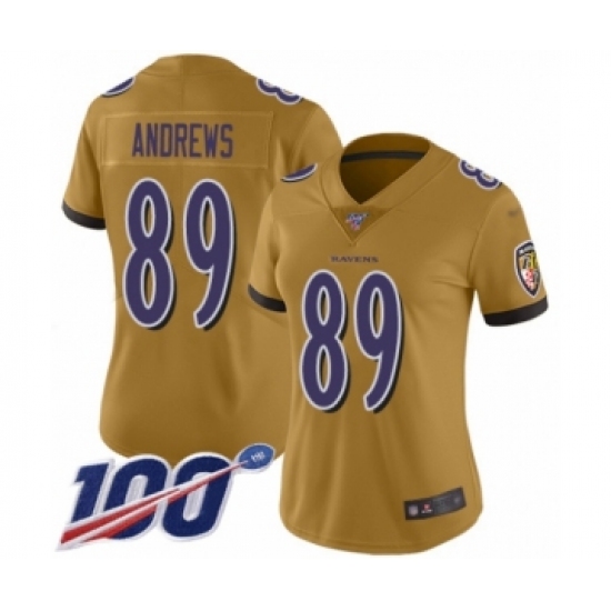 Women's Baltimore Ravens #89 Mark Andrews Limited Gold Inverted Legend 100th Season Football Jersey