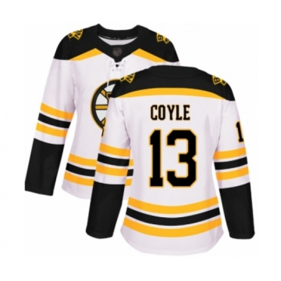 Women's Boston Bruins #13 Charlie Coyle Authentic White Away Hockey Jersey