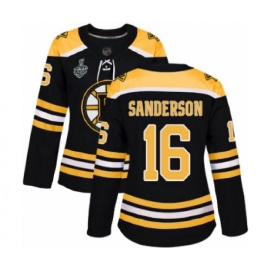 Women's Boston Bruins #16 Derek Sanderson Authentic Black Home 2019 Stanley Cup Final Bound Hockey Jersey