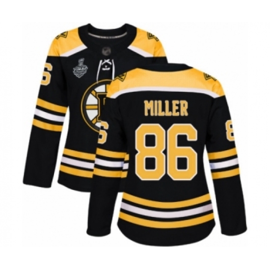 >Women's Boston Bruins #86 Kevan Miller Authentic Black Home 2019 Stanley Cup Final Bound Hockey Jersey