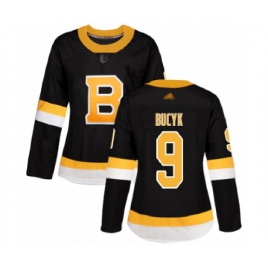 >Women's Boston Bruins #9 Johnny Bucyk Authentic Black Alternate Hockey Jersey