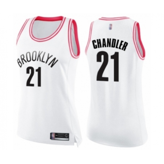 >Women's Brooklyn Nets #21 Wilson Chandler Swingman White Pink Fashion Basketball Jerse