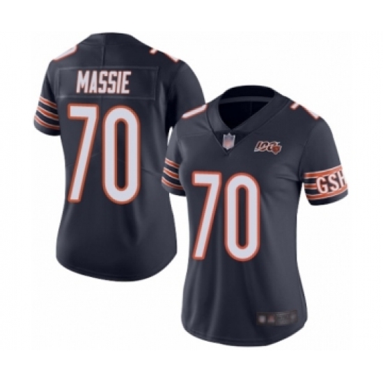 >Women's Chicago Bears #70 Bobby Massie Navy Blue Team Color 100th Season Limited Football Jersey