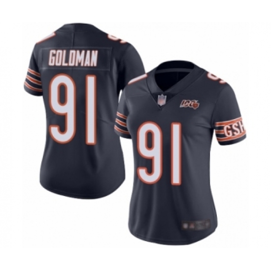 >Women's Chicago Bears #91 Eddie Goldman Navy Blue Team Color 100th Season Limited Football Jersey