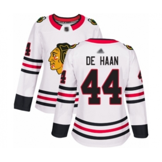 >Women's Chicago Blackhawks #44 Calvin De Haan Authentic White Away Hockey Jersey