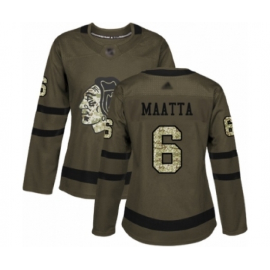 Women's Chicago Blackhawks #6 Olli Maatta Authentic Green Salute to Service Hockey Jersey