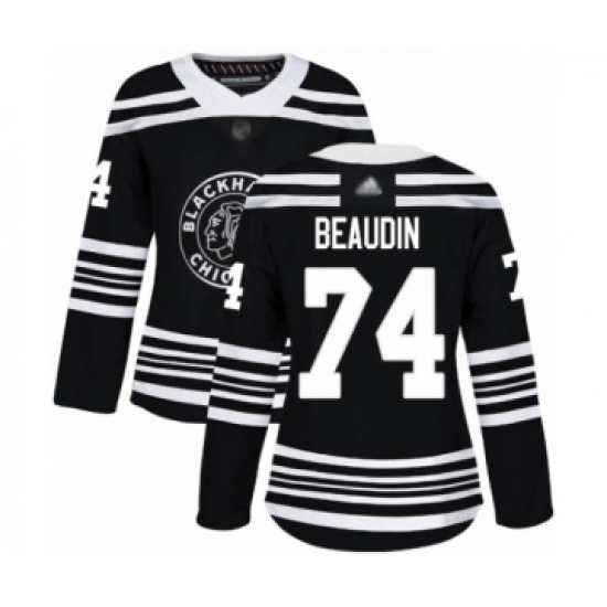 Women's Chicago Blackhawks #74 Nicolas Beaudin Authentic Black Alternate Hockey Jersey