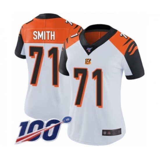 >Women's Cincinnati Bengals #71 Andre Smith White Vapor Untouchable Limited Player 100th Season Football Jersey