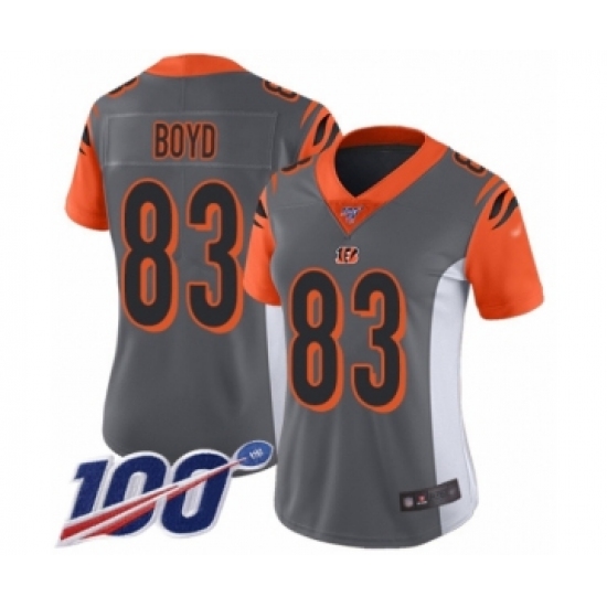 Women's Cincinnati Bengals #83 Tyler Boyd Limited Silver Inverted Legend 100th Season Football Jersey