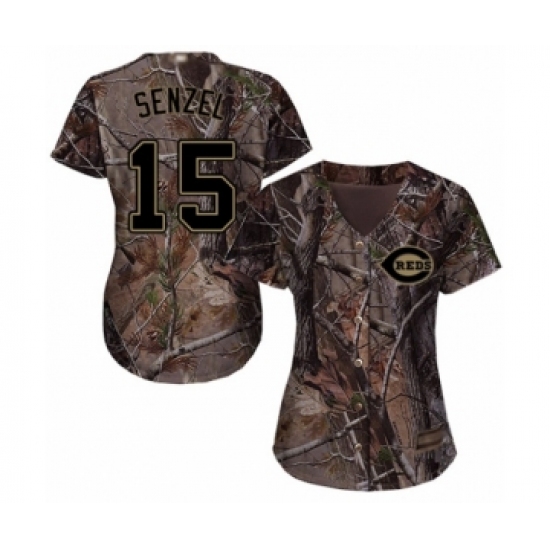 Women's Cincinnati Reds #15 Nick Senzel Authentic Camo Realtree Collection Flex Base Baseball Jersey