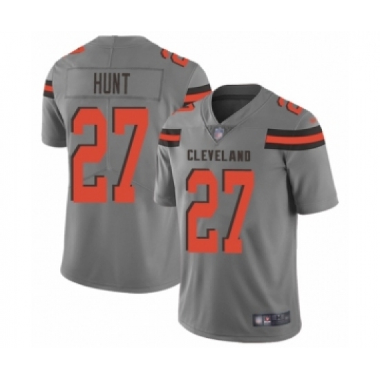 >Women's Cleveland Browns #27 Kareem Hunt Limited Gray Inverted Legend Football Jersey