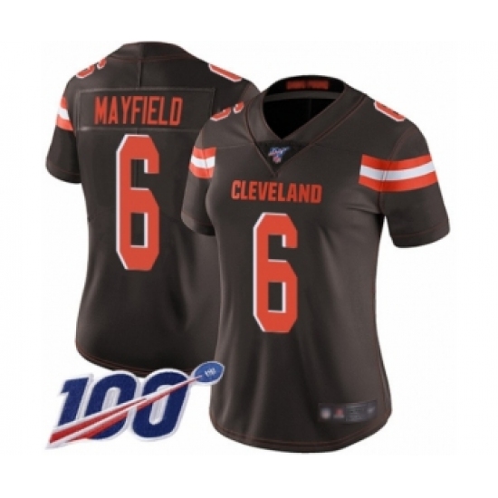 Women's Cleveland Browns #6 Baker Mayfield Brown Team Color 100th Season Vapor Untouchable Limited Player Football Jersey