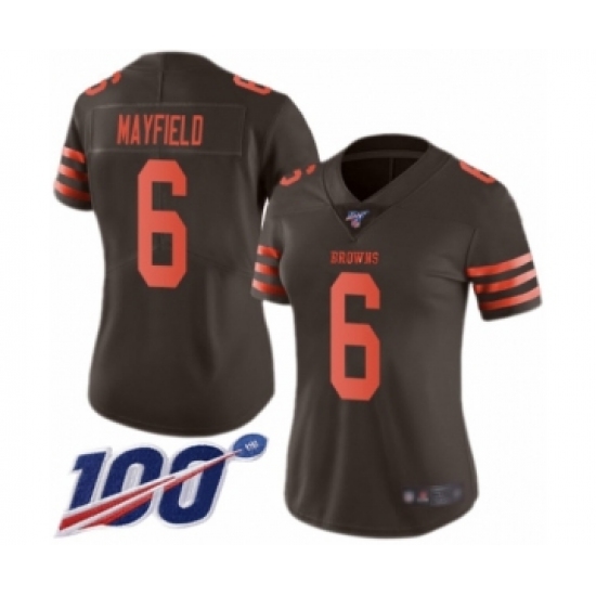Women's Cleveland Browns #6 Baker Mayfield Limited Brown Rush 100th Season Vapor Untouchable Football Jersey