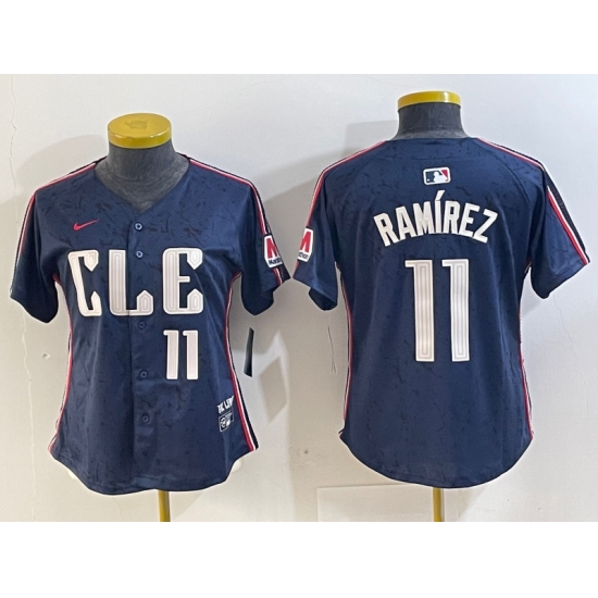 >Women's Cleveland Guardians #11 Jose Ramirez Number Navy 2024 City Connect Limited Stitched Jersey