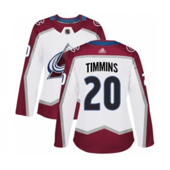 Women's Colorado Avalanche #20 Conor Timmins Authentic White Away Hockey Jersey