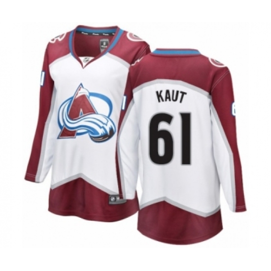 >Women's Colorado Avalanche #61 Martin Kaut Authentic White Away Fanatics Branded Breakaway NHL Jersey