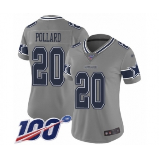 >Women's Dallas Cowboys #20 Tony Pollard Limited Gray Inverted Legend 100th Season Football Jersey