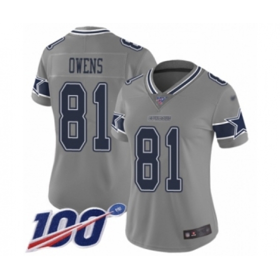 >Women's Dallas Cowboys #81 Terrell Owens Limited Gray Inverted Legend 100th Season Football Jersey