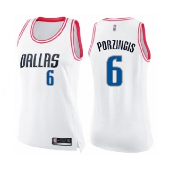 Women's Dallas Mavericks #6 Kristaps Porzingis Swingman White Pink Fashion Basketball Jerse