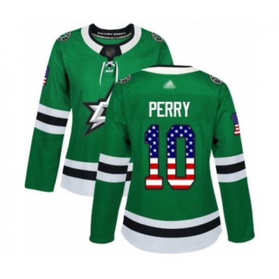 Women's Dallas Stars #10 Corey Perry Authentic Green USA Flag Fashion Hockey Jersey