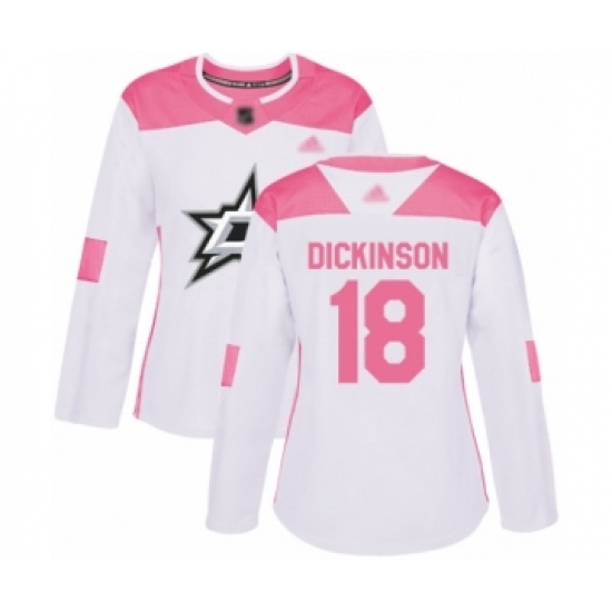 >Women's Dallas Stars #18 Jason Dickinson Authentic White Pink Fashion Hockey Jersey