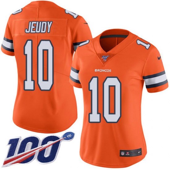 Women's Denver Broncos #10 Jerry Jeudy Orange Stitched Limited Rush 100th Season Jersey