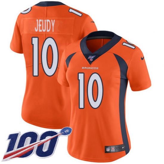 Women's Denver Broncos #10 Jerry Jeudy Orange Team Color Stitched 100th Season Vapor Untouchable Limited Jersey