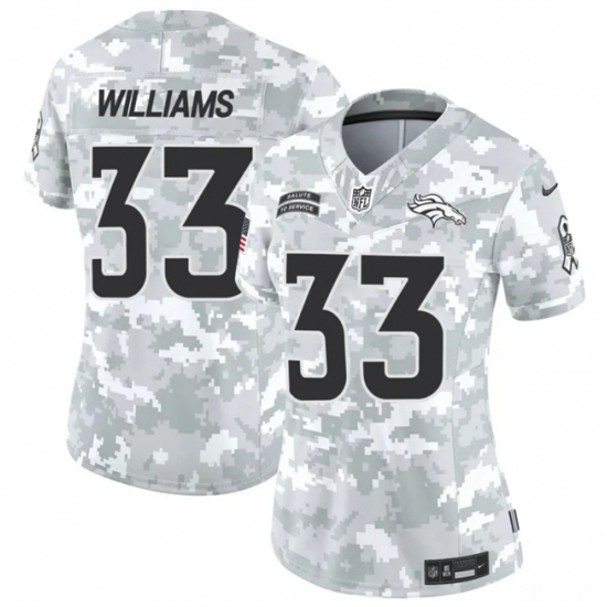 >Women's Denver Broncos #33 Javonte Williams 2024 F.U.S.E Arctic Camo Salute To Service Limited Stitched Jers