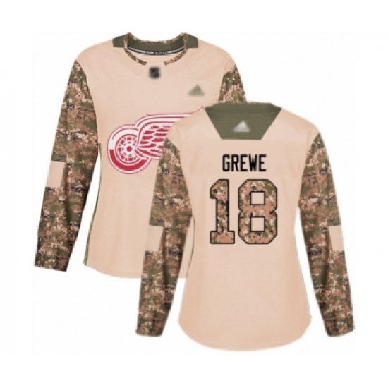 >Women's Detroit Red Wings #18 Albin Grewe Authentic Camo Veterans Day Practice Hockey Jersey