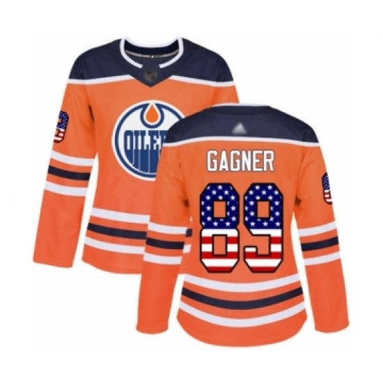 Women's Edmonton Oilers #89 Sam Gagner Authentic Orange USA Flag Fashion Hockey Jersey