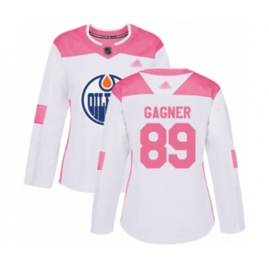 >Women's Edmonton Oilers #89 Sam Gagner Authentic White Pink Fashion Hockey Jersey