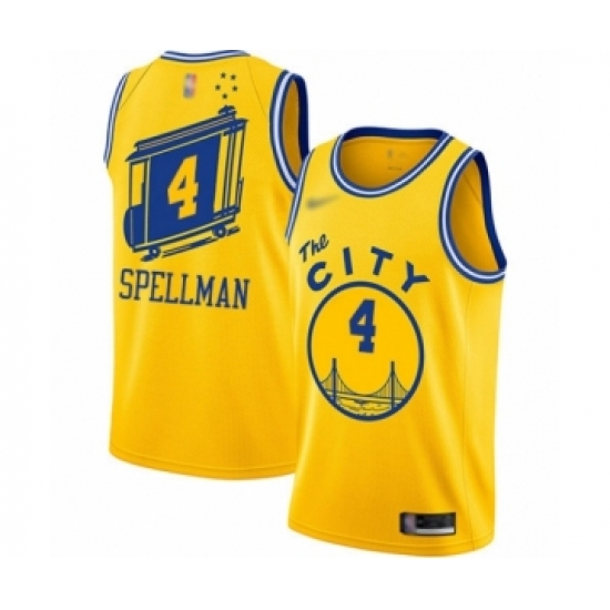 >Women's Golden State Warriors #4 Omari Spellman Swingman Gold Hardwood Classics Basketball Jersey - The City Classic Edition