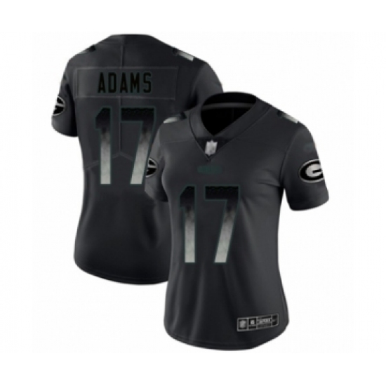 >Women's Green Bay Packers #17 Davante Adams Limited Black Smoke Fashion Limited Football Jersey