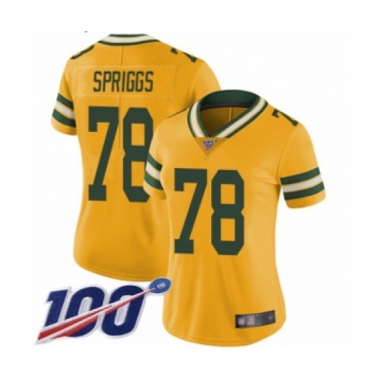>Women's Green Bay Packers #78 Jason Spriggs Limited Gold Rush Vapor Untouchable 100th Season Football Jersey