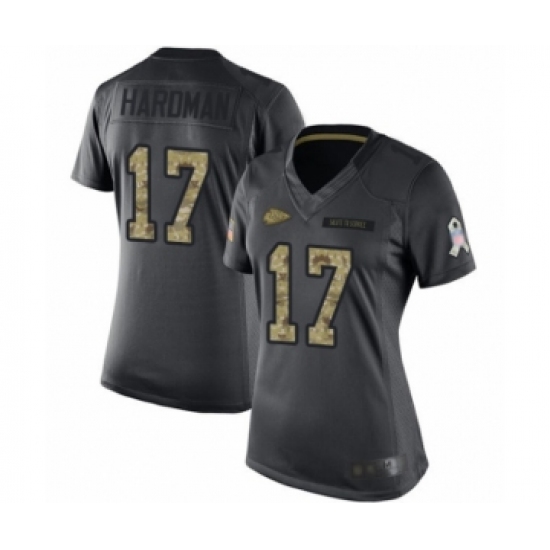 >Women's Kansas City Chiefs #17 Mecole Hardman Limited Black 2016 Salute to Service Football Jersey