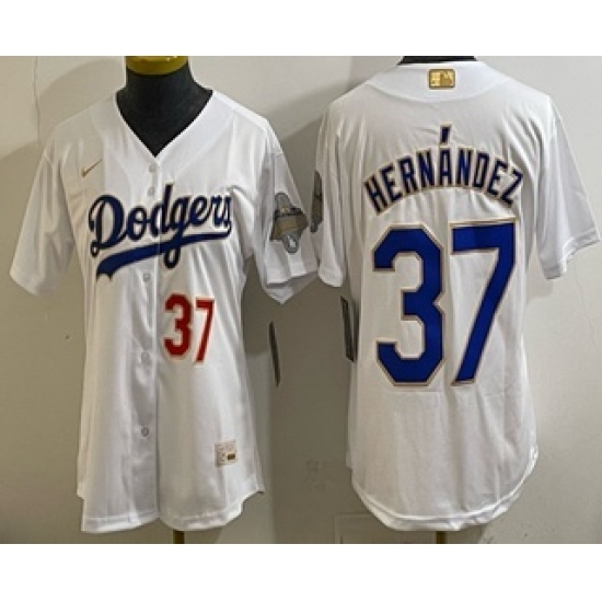>Women's Los Angeles Dodgers #37 Teoscar Hernandez White 2026 Gold Collection Stadium Jersey