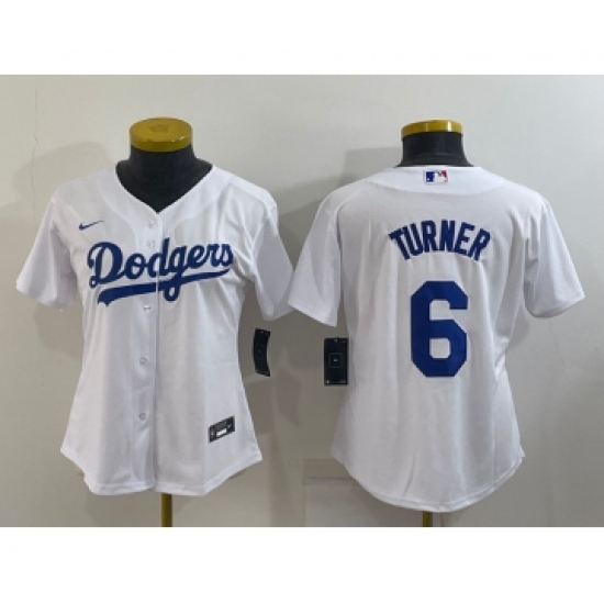 Women's Los Angeles Dodgers #6 Trea Turner White Stitched MLB Cool Base Nike Jersey