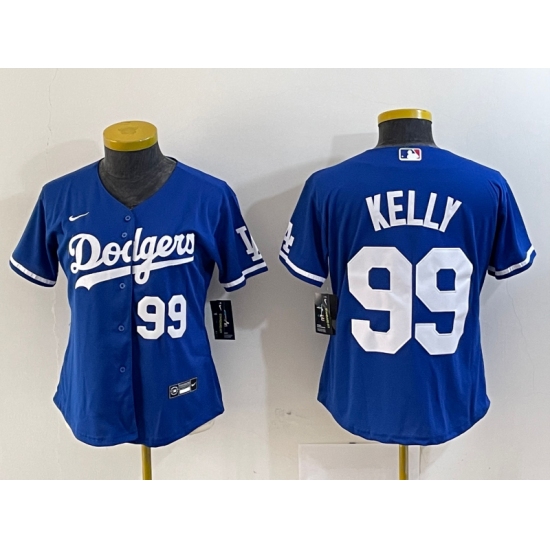 >Women's Los Angeles Dodgers #99 Joe Kelly Number Blue Stitched Cool Base Nike Jerseys