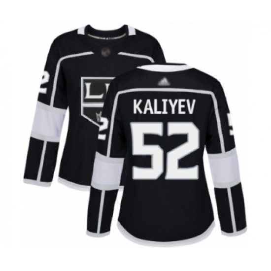 >Women's Los Angeles Kings #52 Arthur Kaliyev Authentic Black Home Hockey Jersey