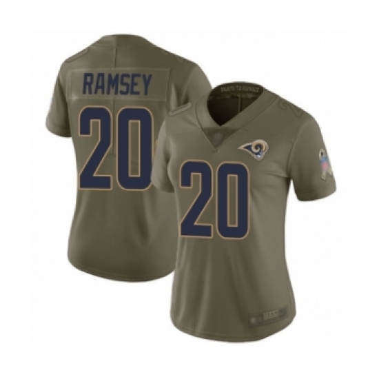 >Women's Los Angeles Rams #20 Jalen Ramsey Limited Olive 2017 Salute to Service Football Jersey