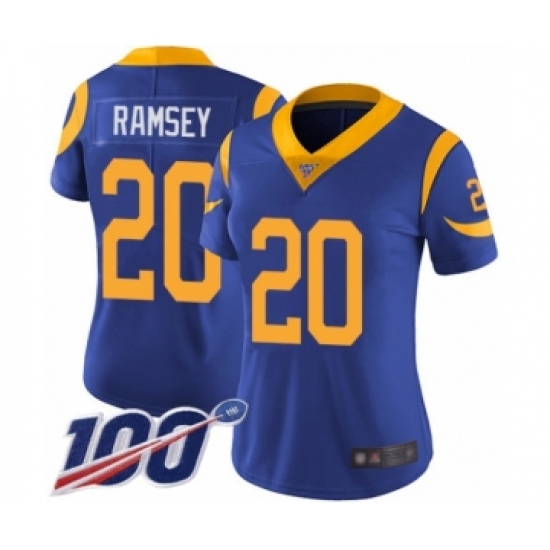 Women's Los Angeles Rams #20 Jalen Ramsey Royal Blue Alternate Vapor Untouchable Limited Player 100th Season Football Jersey